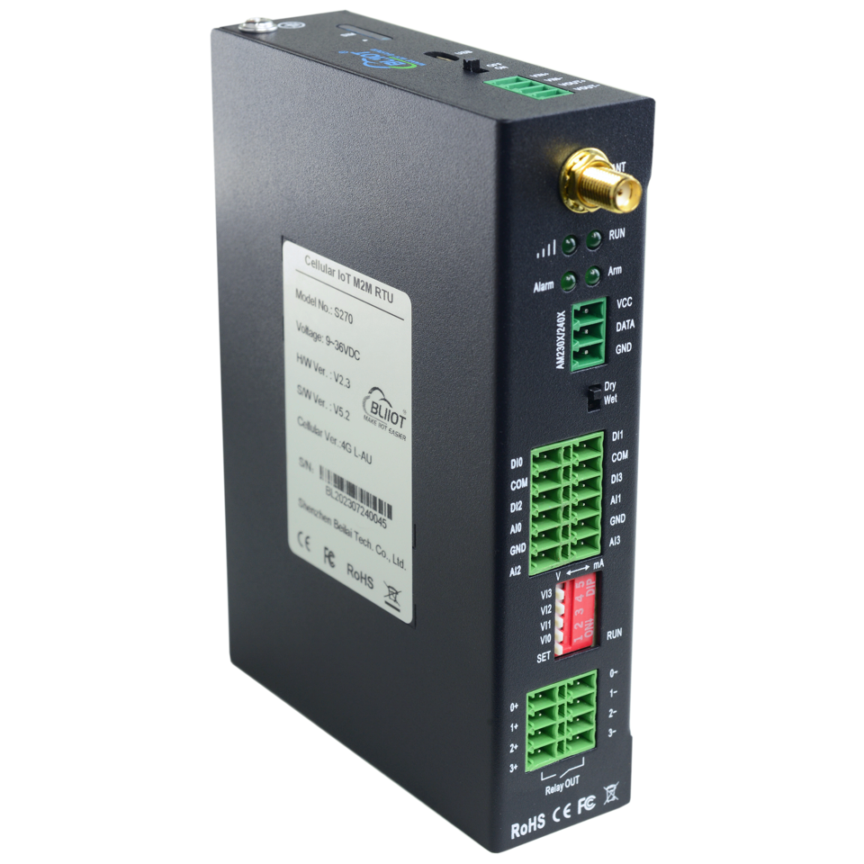 S270 - Remote 4G SMS Monitoring & Alarming Unit (Temp & Humidity, Relay Out, Digital & Analog In) w/ Temp & Humidity Sensor
