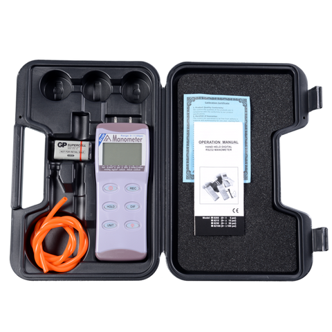 82100 - Digital Display of Gauge or Differential Pressure - in Hard Carry Case. This Model measures from 0 to 100 PSI (750Kpa).