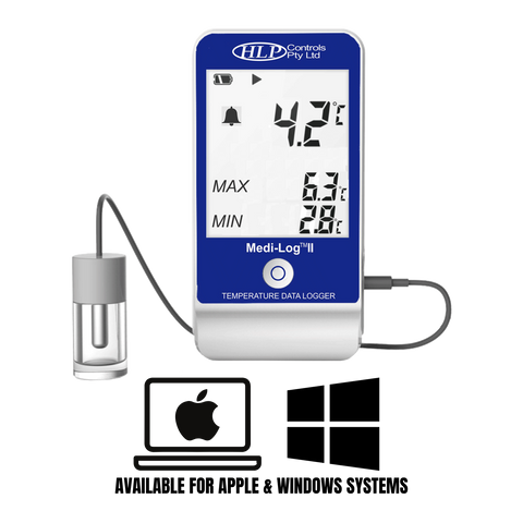 The Medi-Log™ II is the ultimate solution for vaccine and blood fridge monitoring, meeting the latest Strive for Five Guidelines and WHO Requirements. It comes with a certificate of calibration, preset parameters between 2°c and 8°c (or set your own) and large LCD display. Audible & visual alarming ensures temperature breaches are easily identifiable, keeping your medication and vaccines safe. Medi-Log™ II is perfect for Pharmacies, Doctor's Practices, Medical Centres and Hospitals.
